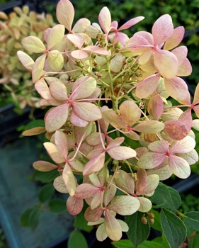 Гopтензія волотиста Pastelgreen буде прикрасою будь-якого саду. Назва сорту перекладається, як пастельно зелений. Протягом квітування, з липня по жовтень, суцвіття змінюють свій колір: вершково – білі, пастельні, оливкові, рожеві. Цікаво спостерігати за цими змінами. Суцвіття конусоподібні, пишні, достатньо великі, складаються з фертильних та стерильних квіток, ароматні.