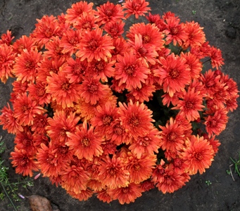 окрас соцветия терракотовый, до 5 см в диаметре, при цветении в жаркую, солнечную погоду окрас терракотовый. Куст хорошо разветвленный, шарообразный. Цветение обильное.