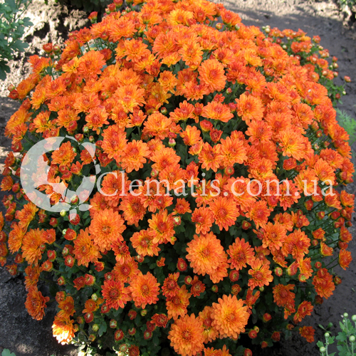 окрас соцветия оранжевый, до 4см в диаметре. Куст хорошо разветвленный, шарообразный. Цветение очень обильное.