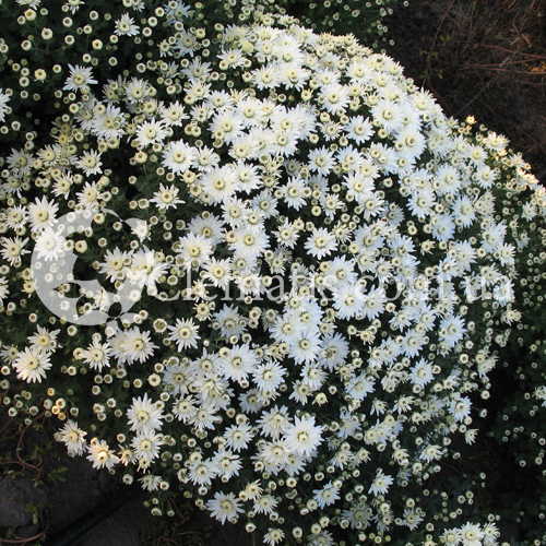 окрас соцветия белый, до 5см в диаметре. Куст сильно разветвленный, идеальный шар. Цветение обильное.