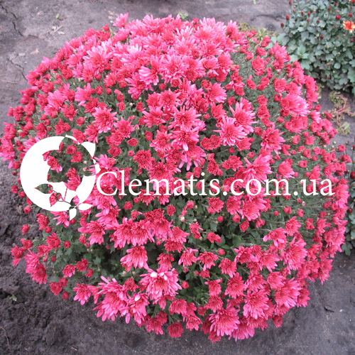 окрас соцветия розовый, до 5см в диаметре. Куст сильно разветвленный, идеальный шар. Цветение очень обильное.