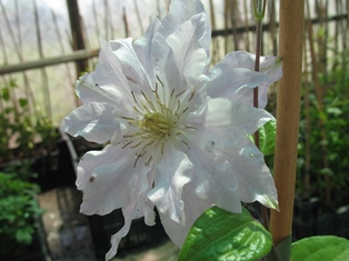 Цветки большие. Чашелистиков 8, белые с серебристо-голубым оттенком, волнистыми краями. На прошлогодних побегах цветки полумахровые.