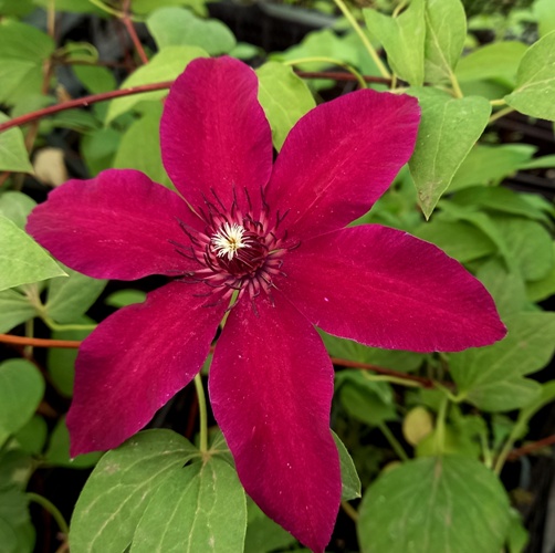 Квітки красиві, розкриті, великі. Чашолистків 6, червоно – пурпурні, бархатисті.