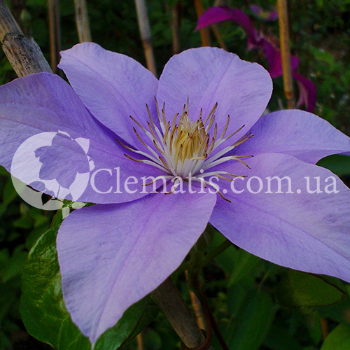 Цветки большие. Чашелистиков 6-7, широкие, лавандово- голубые. Пыльники желтые.