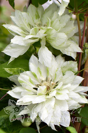 Цветки большие, махровые. Чашелистики белые с небольшой зеленой полоской, белеют.
