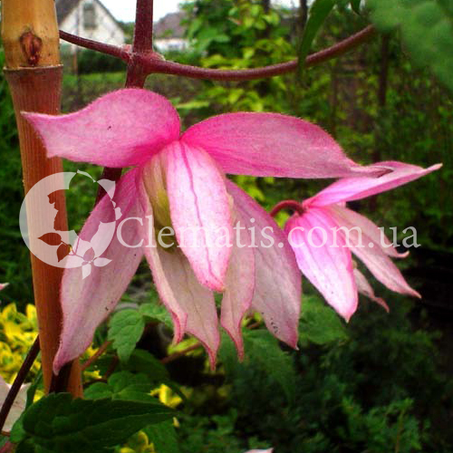 Цветки средние,   полумахровые. Чашелистики сиренево-розовые, к центру темнее, длиной 4-5см. Стаминодии светлее чашелистиков. Сорт неприхотлив в агротехнике и декоративен в течение всего вегетационного периода: весной кусты украшают каскады цветков, летом – серебристые соплодия и цветки.